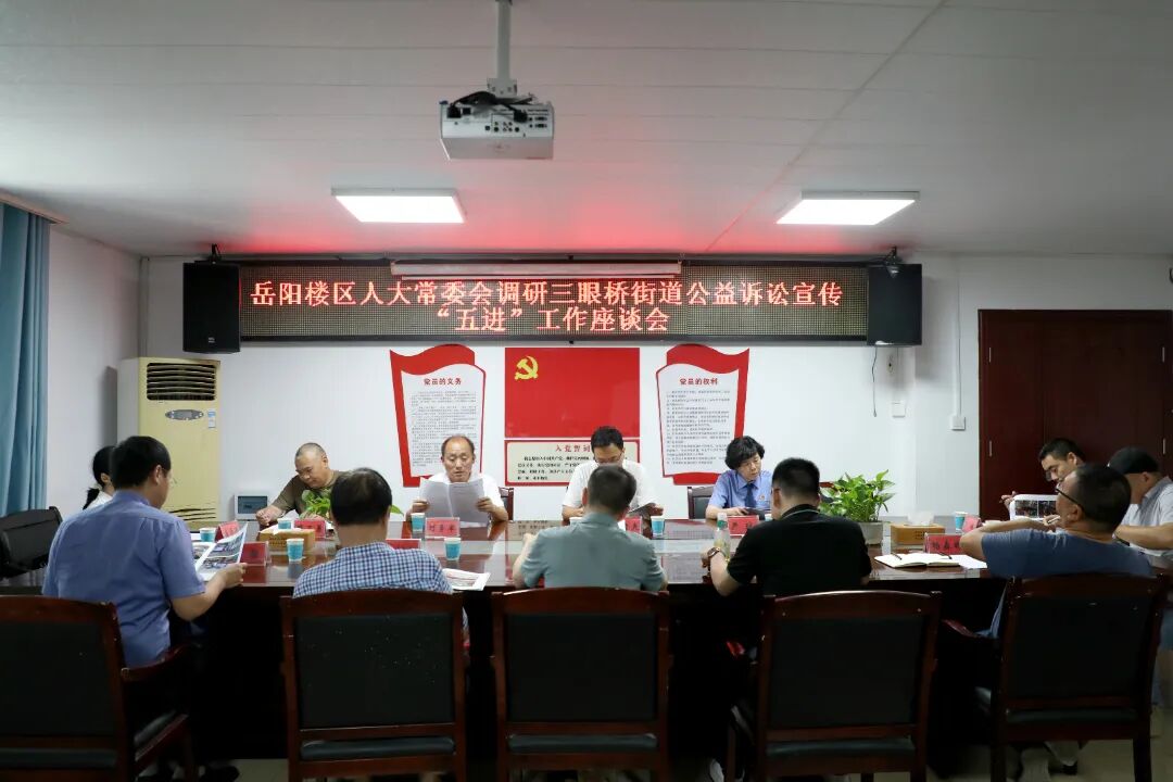 在三眼桥街道办事处召开公益诉讼宣传“五讲”工作座谈会,调研组一行与区人民检察院及街道工作人员就公益诉讼工作进行了深入交流。