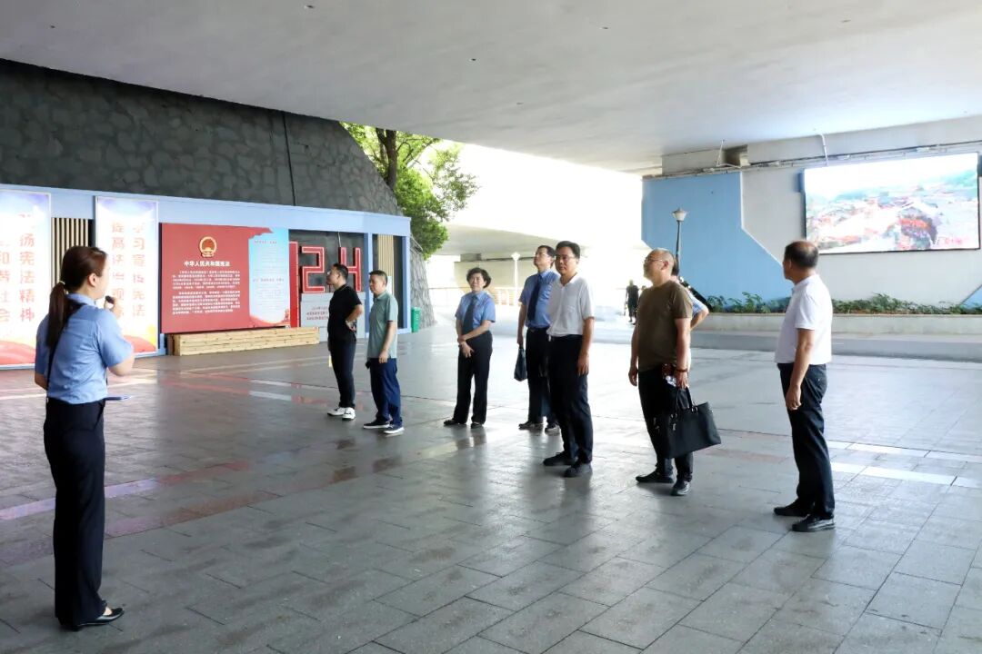 调研组一行前往王家河法治广场,对公益诉讼的宣传工作进行了实地考察,检察人员详细介绍了相关工作的具体实施情况和取得的成效。