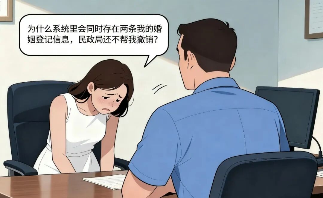 “为什么系统里会有两条我的婚姻登记信息,我结婚的时候从未提示过我,现在发现了也不给我撤销,这很不合理!”被冒名人高某与承办检察官说到。